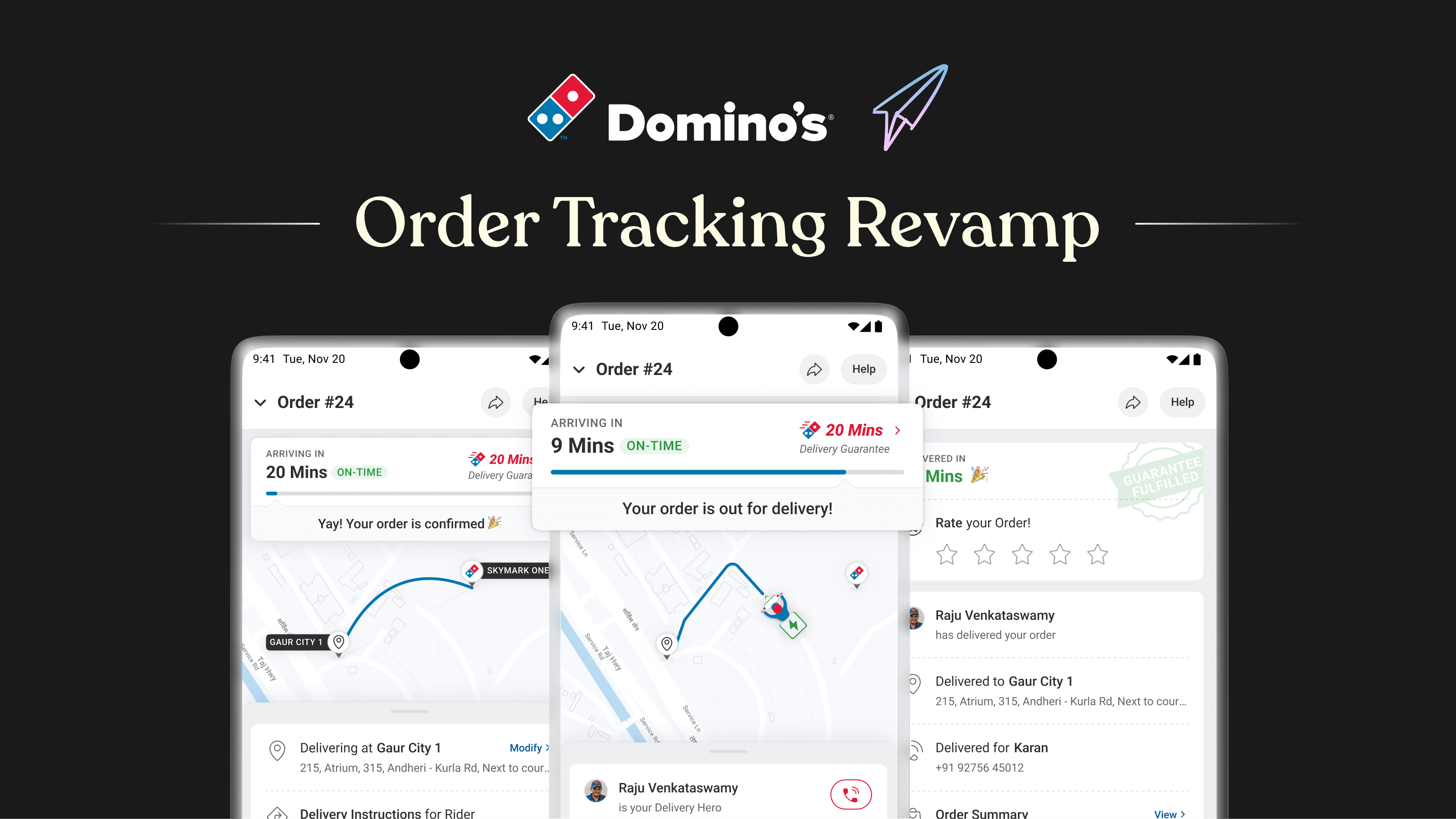 Led the designs for CSAT & NPS for Dominos & Popeyes, Live Activities for order tracking on iOS & Live Notifications for Android (1st for a food-tech brand). Currently leading the digital overhaul of the "post order" experience for Dominos & Popeyes; and "location & address" revamp for Popeyes.I also introduced design tokens as a concept at Jubilant Foodworks and built the entire variable library inside Figma.